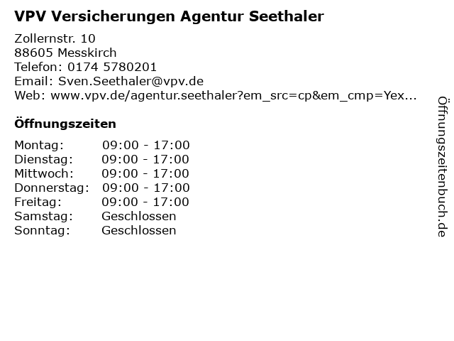 1 5 VPV LEBENSVERSICHERUNGS-AG - Karl-Heinz Boelke (Entfernung: 31,75 km) Eschenstraße 7, 72364 Obernheim 6 VPV Versicherungen Generalagentur Michael Voltin (Entfernung: 32,05 km) Vordere gasse 13, 72459 Albstadt |