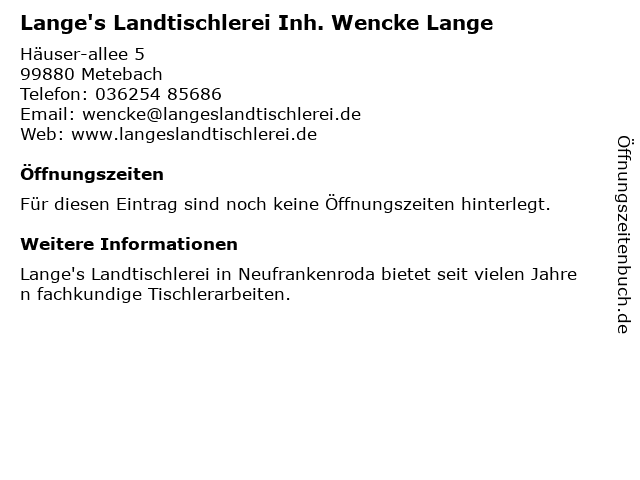 | Lange's Landtischlerei Inh. Wencke Lange anrufen | |