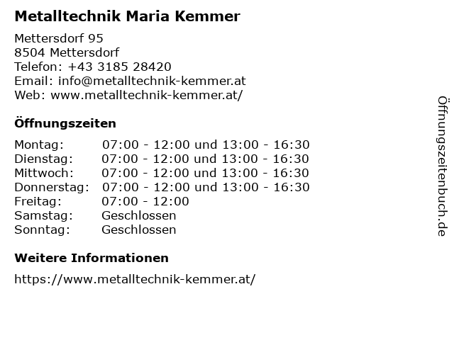 | Montag | 07:00-12:00 und 13:00-16:30 |