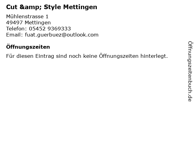 | Öffnungszeiten Cut & Style Mettingen in Mettingen anzeigen | |