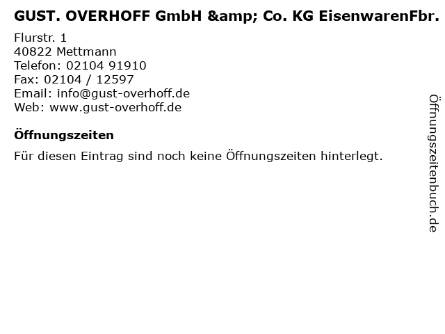 | GUST. OVERHOFF GmbH & Co. KG EisenwarenFbr. anrufen | |