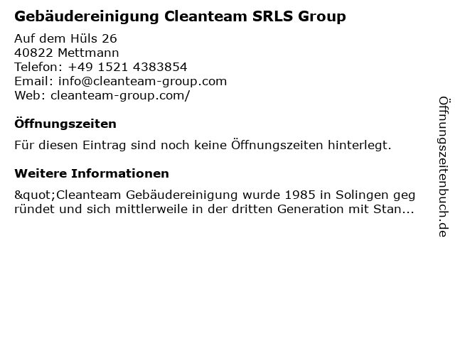 | Gebäudereinigung Cleanteam SRLS Group anrufen | |