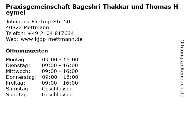 Branchen & Suchbegriffe zu Praxisgemeinschaft Bageshri Thakkar und Thomas Heymel:arzt für kinder- und jugendpsychiatrie, bageshri, heymel, praxisgemeinschaft, thakkar, thomas |