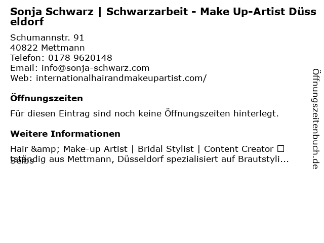 | Sonja Schwarz | Schwarzarbeit - Make Up-Artist Düsseldorf anrufen | |