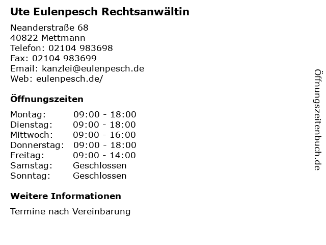 Branchen & Suchbegriffe zu Ute Eulenpesch Rechtsanwältin:eulenpesch, rechtsanwälte, rechtsanwältin, ute |