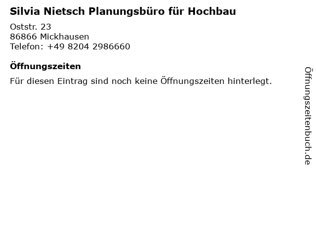 | Silvia Nietsch Planungsbüro für Hochbau anrufen | |
