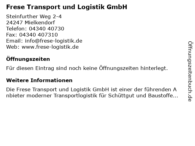 | Frese Transport und Logistik GmbH anrufen | |