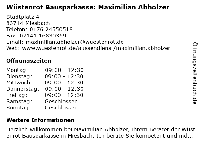 Branchen & Suchbegriffe zu Wüstenrot Bausparkasse: Maximilian Abholzer:abholzer, bausparkasse, maximilian, wüstenrot |