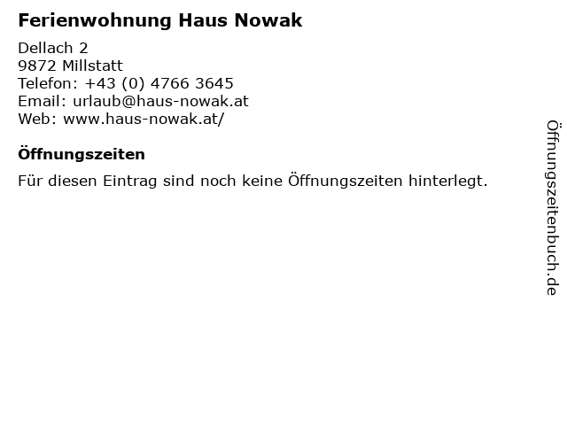 | Öffnungszeiten Ferienwohnung Haus Nowak in Millstatt anzeigen | |