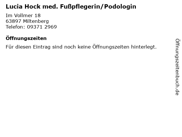 | Lucia Hock med. Fußpflegerin/Podologin anrufen | |