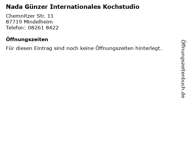 | Nada Günzer Internationales Kochstudio anrufen | |
