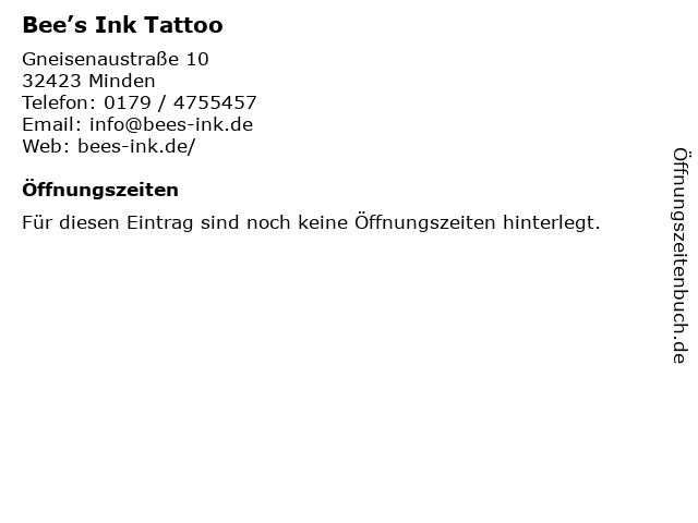 | Öffnungszeiten Bee’s Ink Tattoo in Minden anzeigen | |