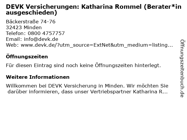 | DEVK Versicherungen: Katharina Rommel (Berater*in ausgeschieden) anrufen | |