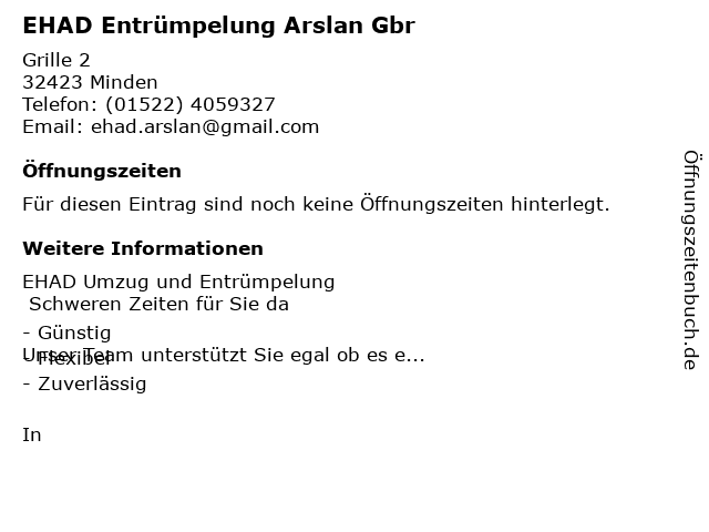| Öffnungszeiten EHAD Entrümpelung Arslan Gbr in Minden anzeigen | |