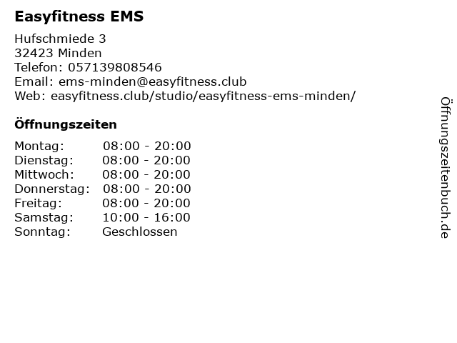 | Öffnungszeiten Easyfitness EMS in Minden anzeigen | |