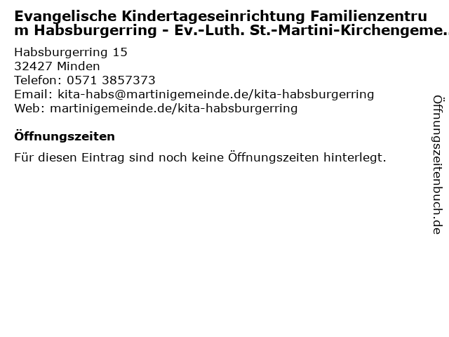 | Evangelische Kindertageseinrichtung Familienzentrum Habsburgerring - Ev.-Luth. St.-Martini-Kirchengemeinde anrufen | |
