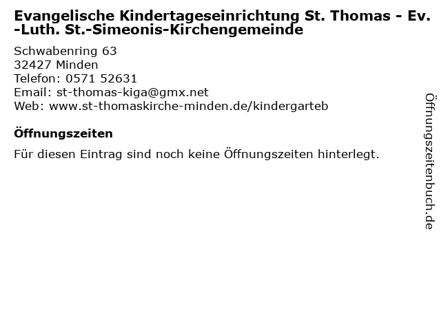 | Evangelische Kindertageseinrichtung St. Thomas - Ev.-Luth. St.-Simeonis-Kirchengemeinde anrufen | |
