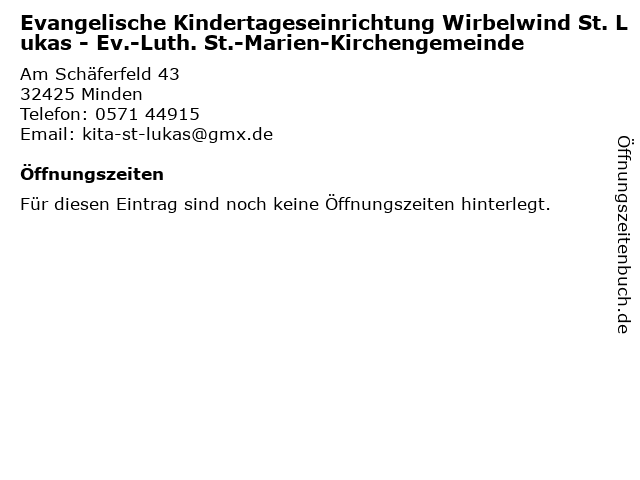 | Evangelische Kindertageseinrichtung Wirbelwind St. Lukas - Ev.-Luth. St.-Marien-Kirchengemeinde anrufen | |