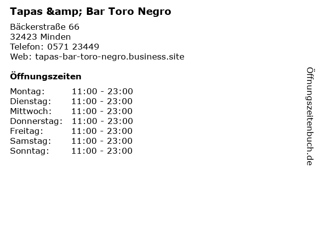 | Öffnungszeiten Tapas & Bar Toro Negro in Minden anzeigen | |