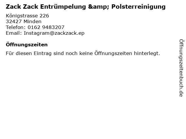 | Zack Zack Entrümpelung & Polsterreinigung anrufen | |