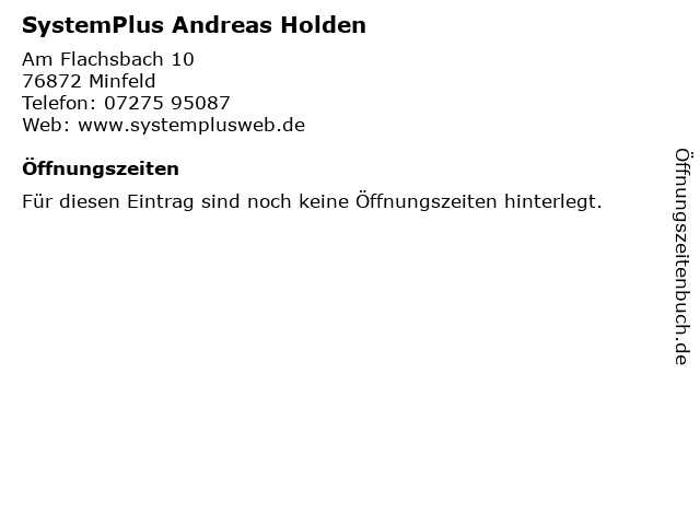 | Öffnungszeiten SystemPlus Andreas Holden in Minfeld anzeigen | |