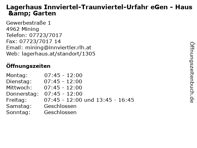 Branchen & Suchbegriffe zu Lagerhaus Innviertel-Traunviertel-Urfahr eGen - Haus & Garten:baustoffe, brennstoffe, egen, garten, haus, heimwerken, innviertel, lagerhaus, mining, raiffeisen, traunviertel, urfahr |