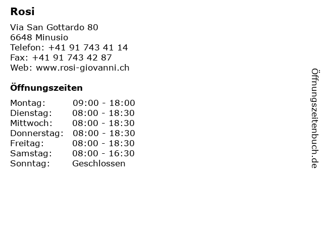 | Öffnungszeiten Rosi in Minusio anzeigen | |