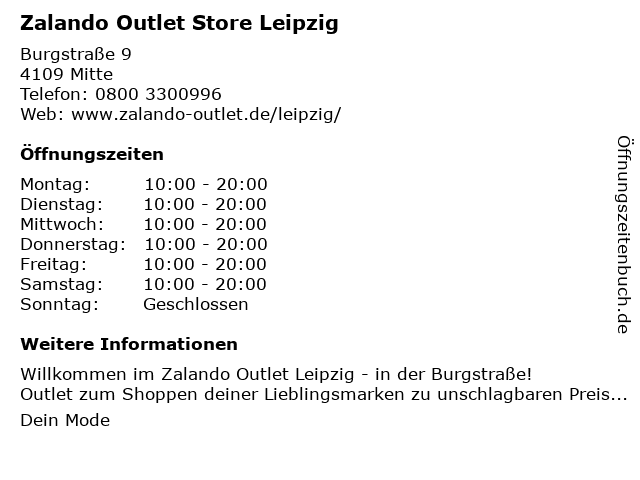 | Öffnungszeiten Zalando Outlet Store Leipzig in Mitte anzeigen | |