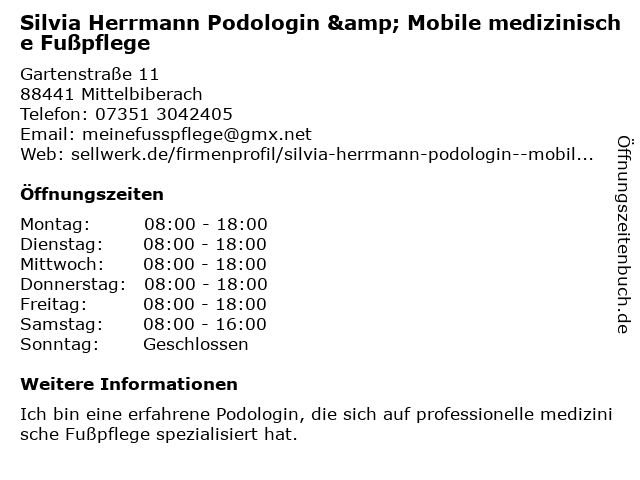 Branchen & Suchbegriffe zu Silvia Herrmann Podologin & Mobile medizinische Fußpflege:fußpflege, herrmann, medizinische, mobile, podologin, silvia |