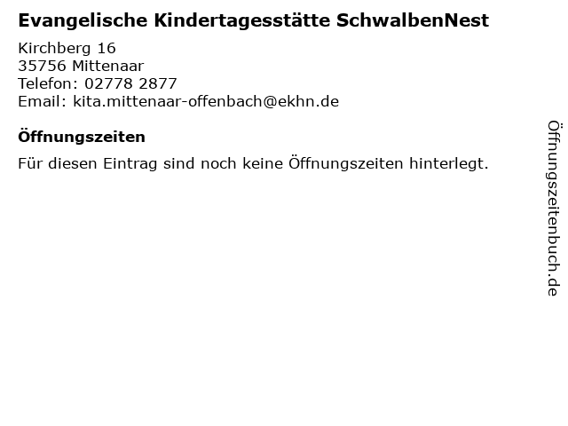 | Evangelische Kindertagesstätte SchwalbenNest anrufen | |