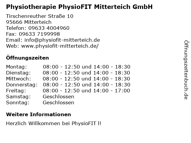 Branchen & Suchbegriffe zu Physiotherapie PhysioFIT Mitterteich GmbH:physiofit, physiotherapie |