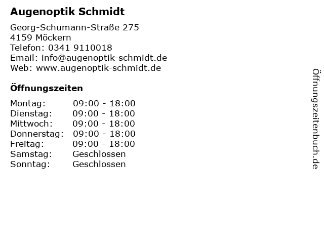 | Öffnungszeiten Augenoptik Schmidt in Möckern anzeigen | |