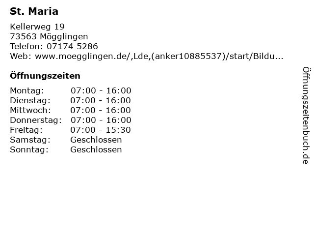 | Telefonnummer St. Maria in Mögglingen (07174 5286) anrufen | |