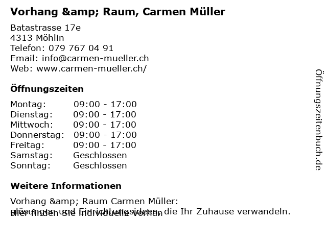 Öffnungszeiten Vorhang & Raum, Carmen Müller