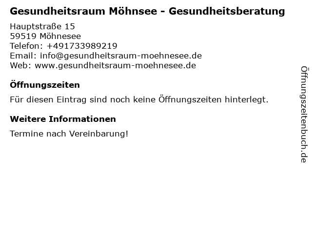 | Gesundheitsraum Möhnsee - Gesundheitsberatung anrufen | |