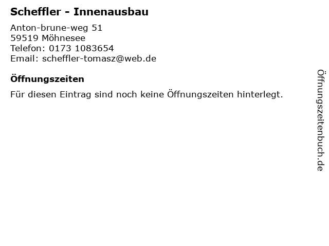 | Öffnungszeiten Scheffler - Innenausbau in Möhnesee anzeigen | |