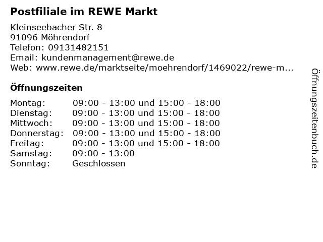 Postfiliale im REWE Markt in Möhrendorf | Telefonnummer, Öffnungszeiten und Adresse
