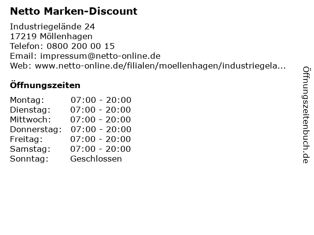 | Öffnungszeiten Netto Marken-Discount in Möllenhagen anzeigen | |