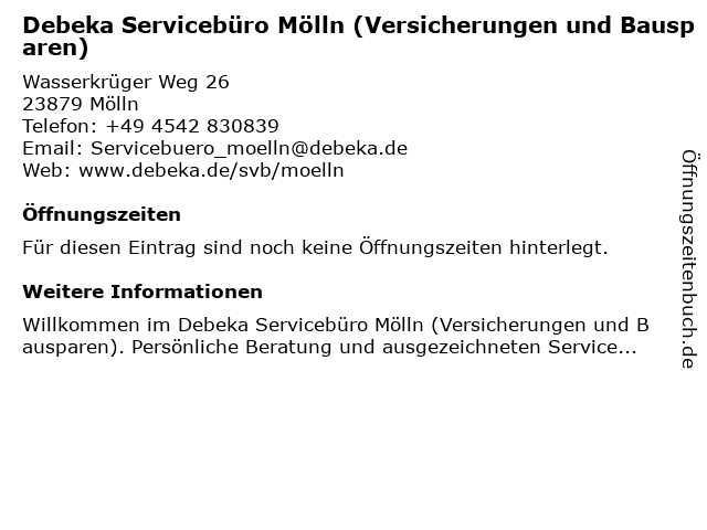 | Debeka Servicebüro Mölln (Versicherungen und Bausparen) anrufen | |
