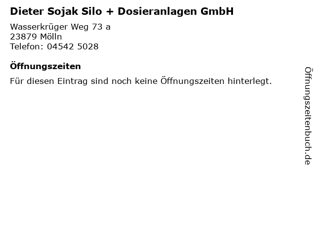 | Dieter Sojak Silo + Dosieranlagen GmbH anrufen | |