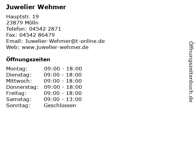 | Öffnungszeiten Juwelier Wehmer in Mölln anzeigen | |