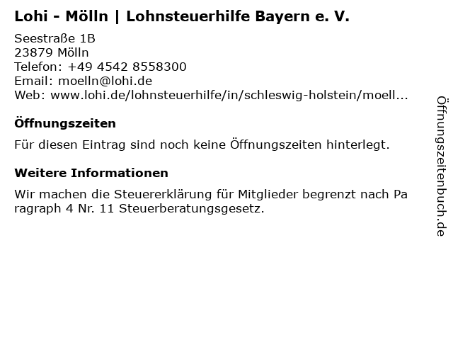 Lohi - Mölln | Lohnsteuerhilfe Bayern e. V. anrufen | |