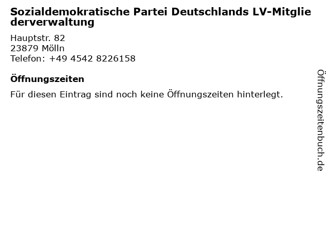 | Sozialdemokratische Partei Deutschlands LV-Mitgliederverwaltung anrufen | |