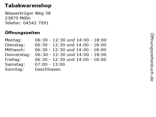 | Öffnungszeiten Tabakwarenshop in Mölln anzeigen | |