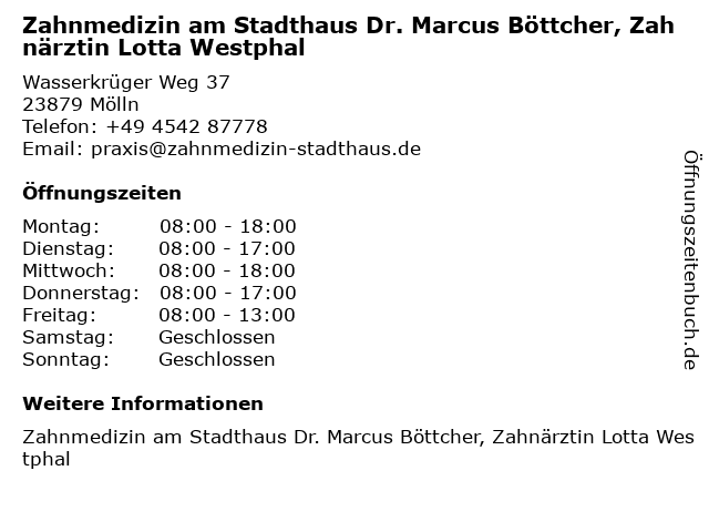 Branchen & Suchbegriffe zu Zahnmedizin am Stadthaus Dr. Marcus Böttcher, Zahnärztin Lotta Westphal:böttcher, dr., lotta, marcus, stadthaus, westphal, zahnarzt, zahnmedizin, zahnärztin |