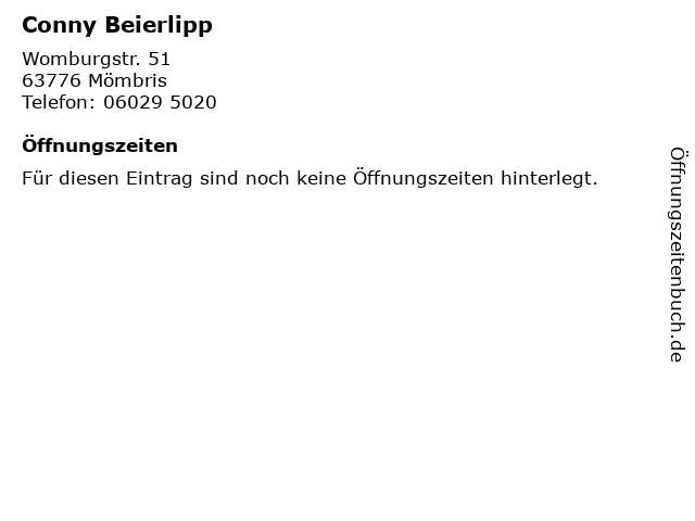 | Öffnungszeiten Conny Beierlipp in Mömbris anzeigen | |