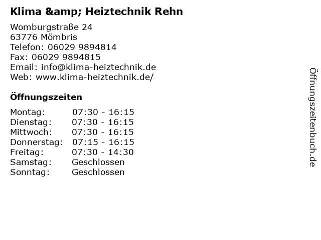 | Öffnungszeiten Klima & Heiztechnik Rehn in Mömbris anzeigen | |