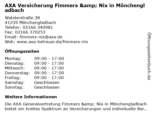 Branchen & Suchbegriffe zu AXA Versicherung Fimmers & Nix in Mönchengladbach:altersvorsorge, autoversicherung, axa, berufshaftpflichtversicherung, fimmers, gebäude- und hausratsversicherung, gewerbeversicherung, lebensversicherung, nix, unternehmen für versicherungsfachfragen, versicherung, zahnmedizinische versicherung |