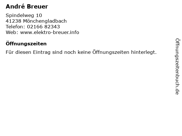 | Öffnungszeiten André Breuer in Mönchengladbach anzeigen | |