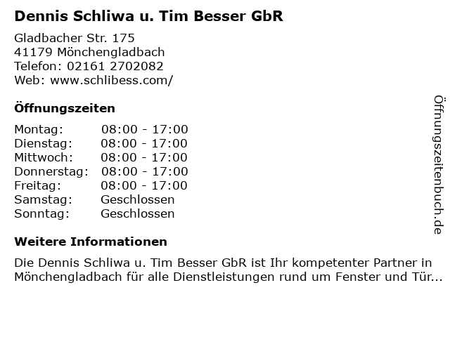 Branchen & Suchbegriffe zu Dennis Schliwa u. Tim Besser GbR:besser, dennis, gbr, schliwa, tim, u. |